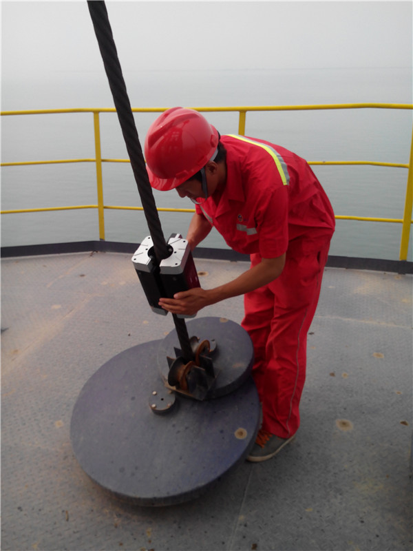 港口用無繩在線實時監(jiān)測系統(tǒng)為無繩、皮帶牽引鋼絲繩在線實時探傷而設(shè)計,可適應(yīng)抱索器不可拆卸的工況條件,屬智能型探傷工程自動化監(jiān)測裝置。系統(tǒng)采用全天候無人值守自動探傷監(jiān)管模式,利于及時了解運行中鋼絲繩使用狀況,保障安全。 該系統(tǒng)獨創(chuàng)“三維磁感應(yīng)橋”、“變量補償傳感器”、“自平衡同步勵磁”、“半閉合磁路和傳感器分布”、“結(jié)構(gòu)形式”、“用軟件”等組合創(chuàng)新技術(shù)集成,實現(xiàn)全天候在線實時自動探測、聲光報警、遠(yuǎn)程監(jiān)管,可隨時查閱鋼絲繩的內(nèi)外斷絲、磨損、銹腐蝕、疲勞、變形等損傷的量值、位置、類型等損傷信息,定時打印探傷報告。